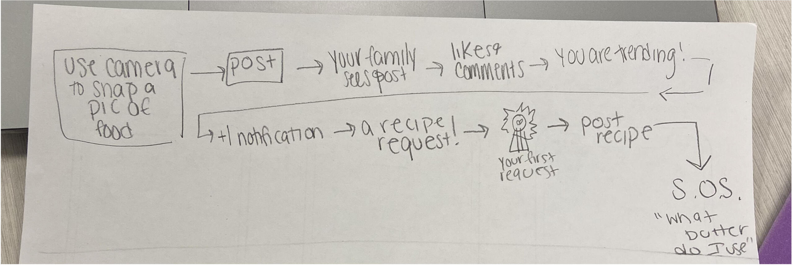 To start a journey map was created for my parents and grandparents to test. My goal for this experiment was to see how my family understood and reacted to their meals being shared with each other.
